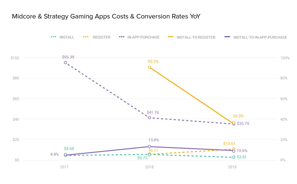 - Prepare for a perfect storm of marketing conditions. Moderate increases in costs and impressive double-digit conversion rates indicate that users still need some convincing early in the funnel, but they are willing to pay, play and stay around—particularly if the sub-category offers a habit-forming core loop.