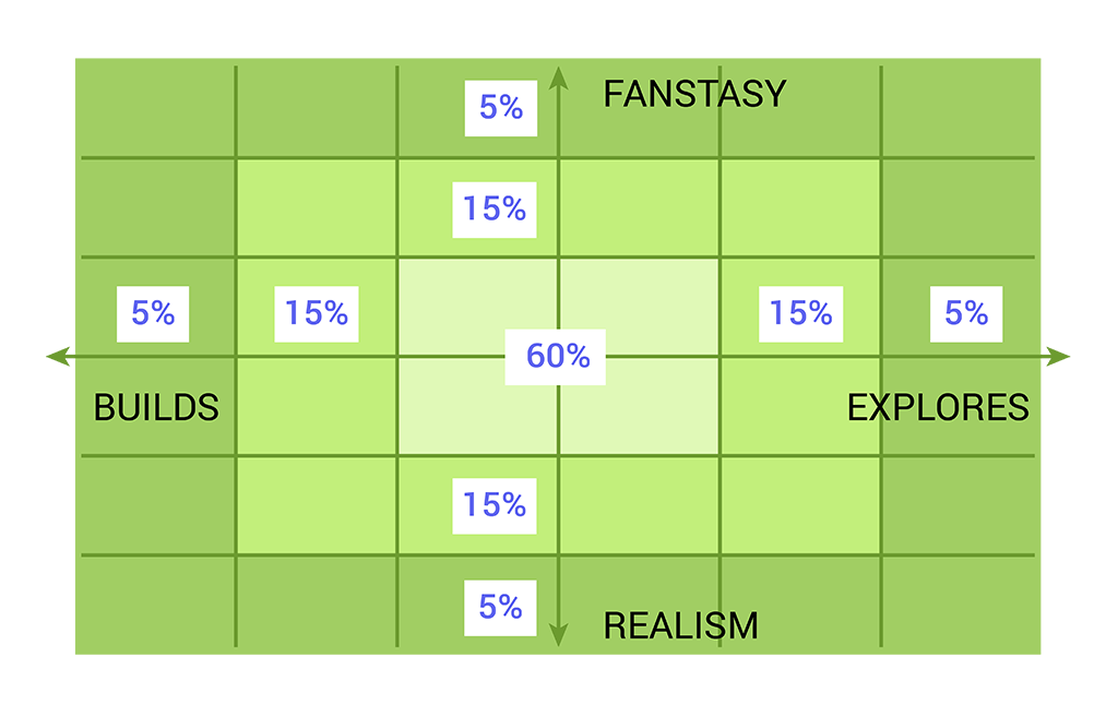 - Novelty can be scored on a Fantasy/Realism axis together with a Build/Explore axis.