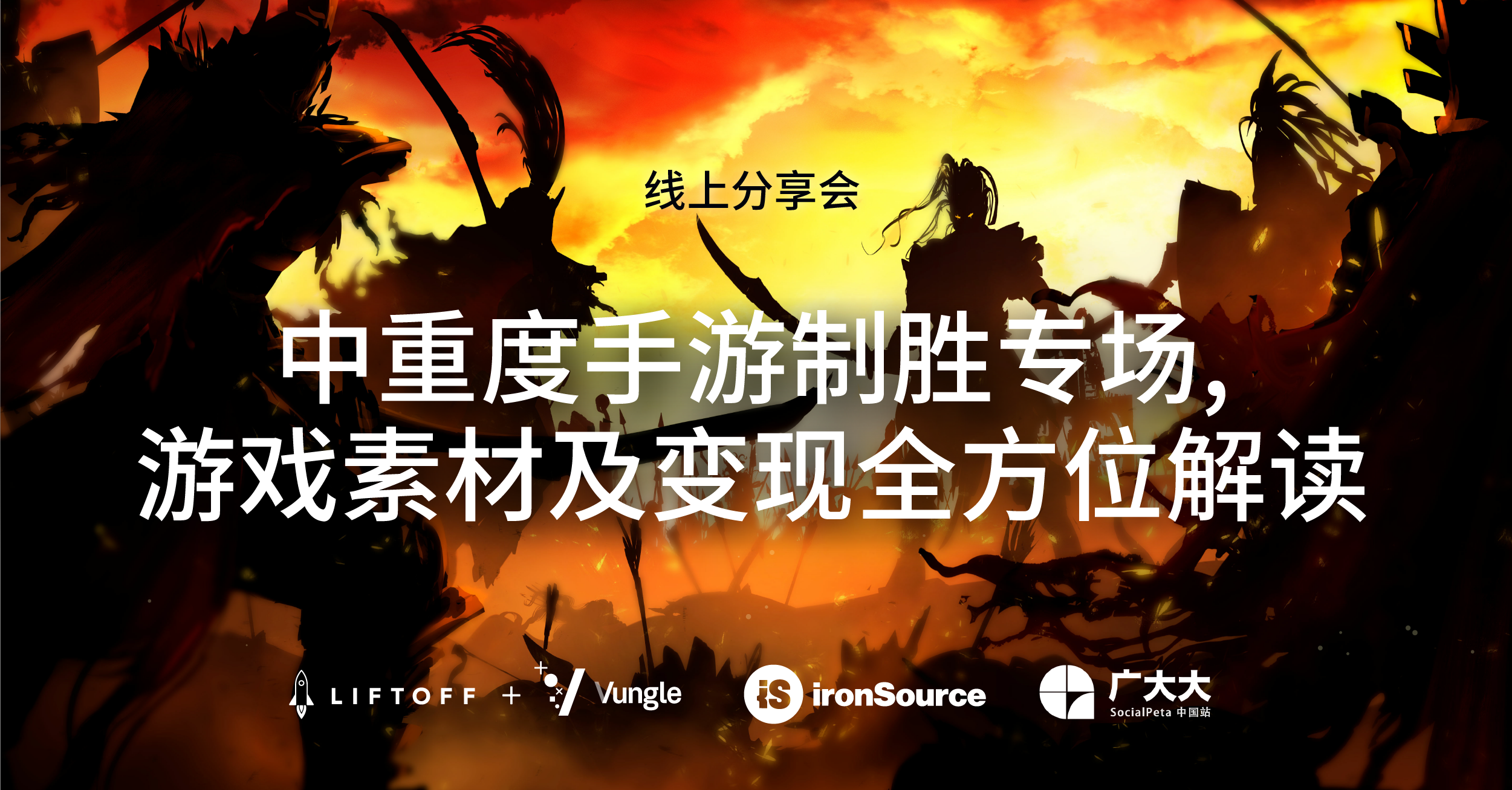 对于中重度赛道开发者来说,如何提升广告创意素材以及产品变现能力,逐渐成为全行业的痛点。Liftoff + Vungle携手ironSource以及广大大,为您一网打尽这些热门话题。深度分析素材数据,拆解内购及变现策略,全面提升产品变现能力,掘金中重度游戏市场。