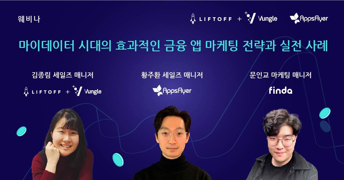 앱스플라이어와 리프트오프가 함께 진행한 이번 웨비나에서는 특히 신용 정보 승인, 계좌개설, 대출 등 유저 퍼널 과정이 복잡한 금융 앱이 데이터를 활용해 효과적으로 앱 마케팅을 펼치는 방법을 살펴봅니다. 또한, 금융 앱 마케팅 전문가, 핀다의 문인교 마케팅 매니저가 실전 마케팅 인사이트를 공유합니다.